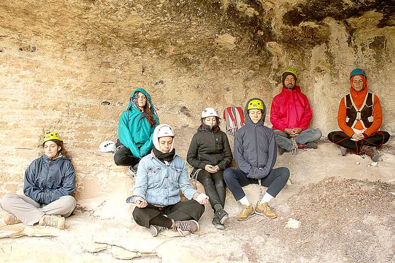 Escalades de niveau débutant et confirmé, randonnées escalades, bivouaques et méditations en caverne paléolithique.