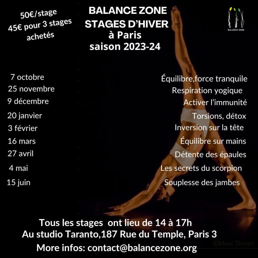 Yoga vinyasa tous niveaux enseigné par Laurence Schroeder, directrice des studios Balance Zone et la formation de professeur de yoga vinyasa Balance Zone, certifié par l’Alliance International de Yoga (YAI).